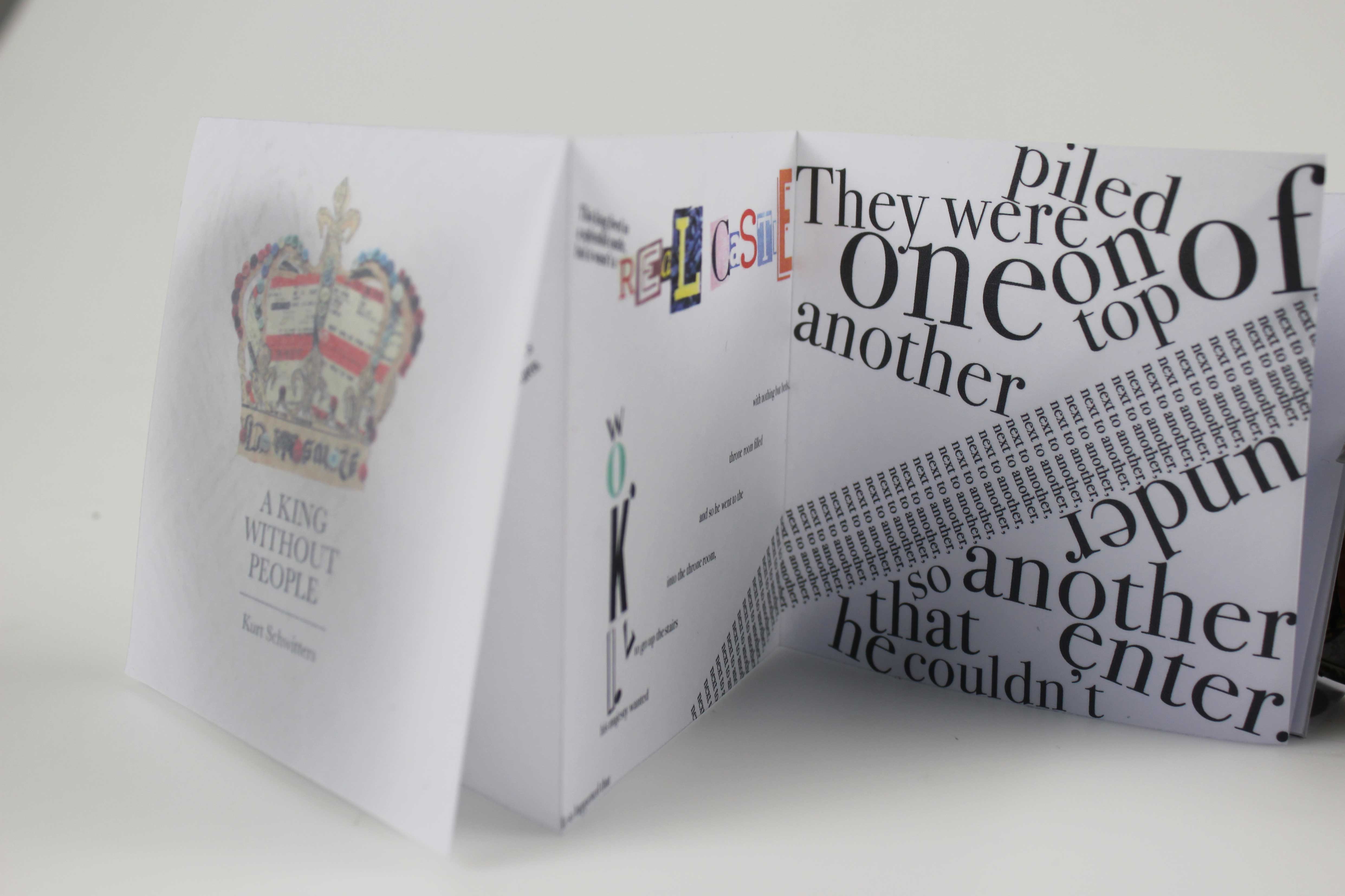 We have just finished our first two projects of third year, both centred around the work of Kurt Schwitters – specifically, his fairytales. For the Design Communication side of the course we were given one of his fairytales which we had to interpret into a tangible object. I was given the story ‘A King Without People’ – which in summary is about a king who has no kingdom, it’s a very confusing story which is full of contradictions.